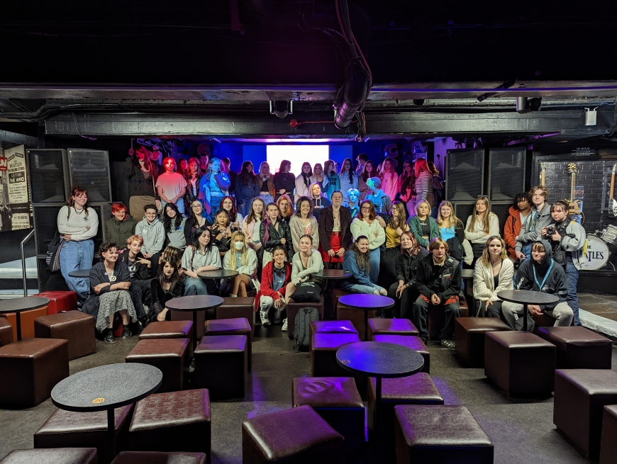 It has been inspiring to work with the Cavern and see our college level students stretch their thinking and practical skills to create unique visuals informed by the music, the club, and the vibrant city of Liverpool.